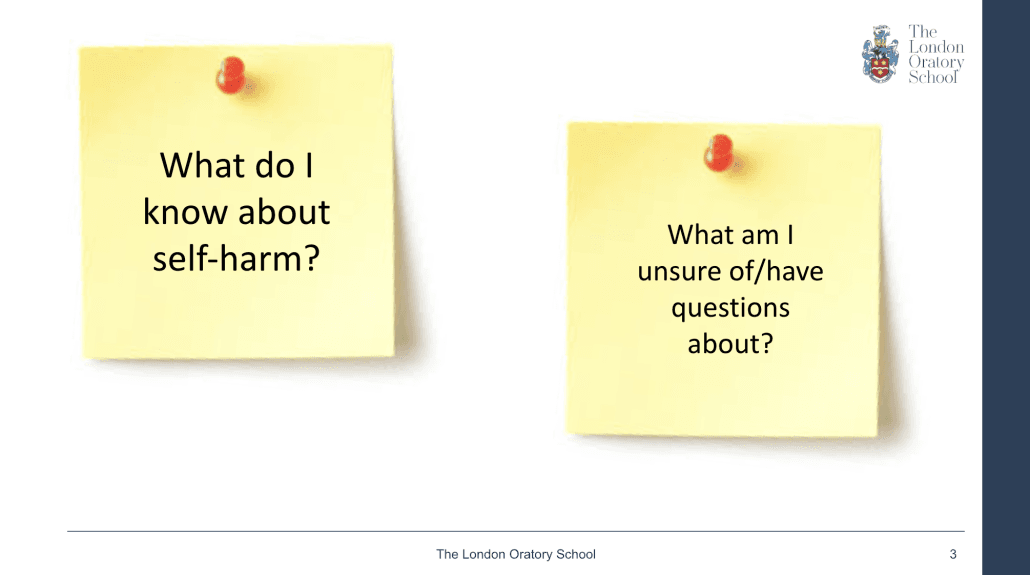 PSHE Self-Harm Workshop from Wilfrid’s House delivered for The London Oratory School